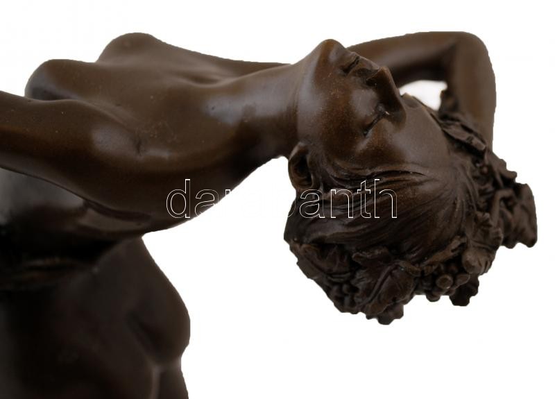 Leírás: Női akt szőlő fürtökkel, jelzett (H. Frishmuth, J.B Deposee), nagy szériás modern bronz szobor, márvány talapzattal, m:31 cm (talapzat nélkül)