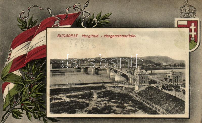 Budapest, Margit híd, villamos, magyar zászló, címer https://www.darabanth.com/hu/240-Gyorsarveres/240.0/Kepeslapok/Magyarorszag~7/Budapest-Margit-hid-villamos-magyar-zaszlo-cimer~II1113728