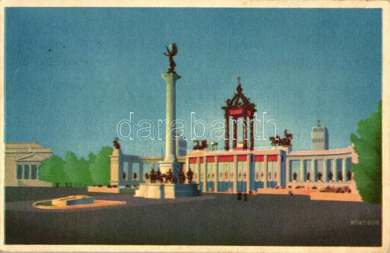 Leírás: Budapest XIV. Hősök tere, a XXXIV. Nemzetközi Eucharisztikus Kongresszus főoltára, So. Stpl s: Börtsök (EK)