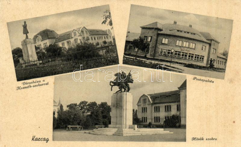 Karcag, Városháza, Kossuth szobor, postapalota, Hősök szobra https://www.darabanth.com/hu/240-Gyorsarveres/240.0/Kepeslapok/Magyarorszag~7/Karcag-Varoshaza-Kossuth-szobor-postapalota-Hosok-szobra~II1064605