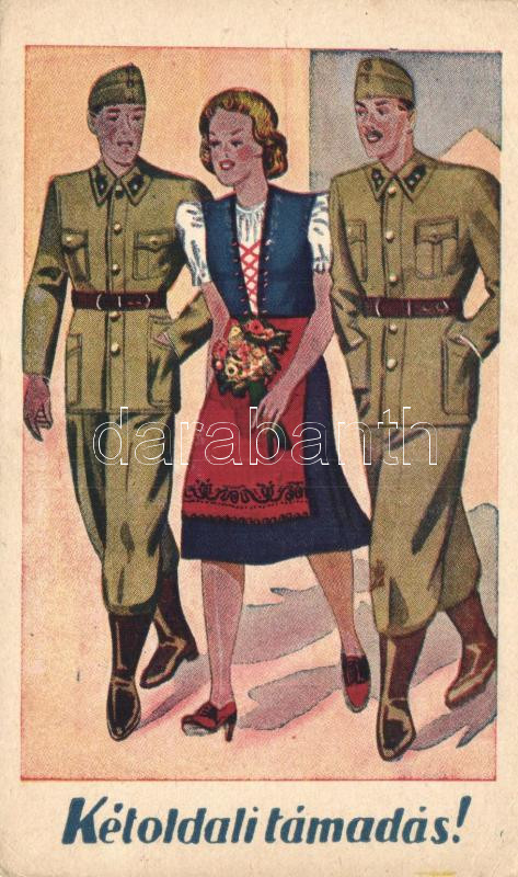 Kétoldali támadás! / Hungarian military humour, couple (EK) https://www.darabanth.com/hu/241-Gyorsarveres/241.0/Kepeslapok/Katonai~200055/Ketoldali-tamadas-Hungarian-military-humour-couple-EK~II1052353