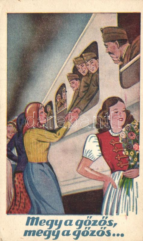 Megy a gőzös, megy a gőzös... / Hungarian military humour, train, wome... https://www.darabanth.com/hu/241-Gyorsarveres/241.0/Kepeslapok/Katonai~200055/Megy-a-gozos-megy-a-gozos-Hungarian-military-humour-train-women-EK~II1052356