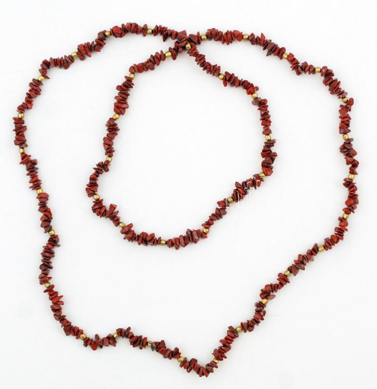 Leírás: Jáspiskő nyaklánc, h: 43 cm