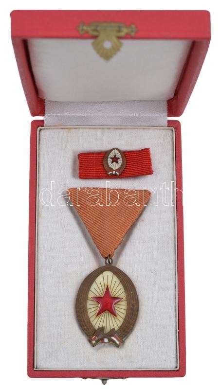Leírás: 1964. "Munka Érdemrend" bronz fokozata, zománcozott Br kitüntetés mellszalagon, miniatűrrel szalagsávon, eredeti dísztokban T:1-