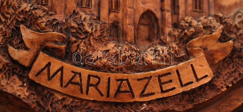 Leírás: Mariazellt ábrázoló faragott fa fali tál, szép állapotban, d: 20 cm
