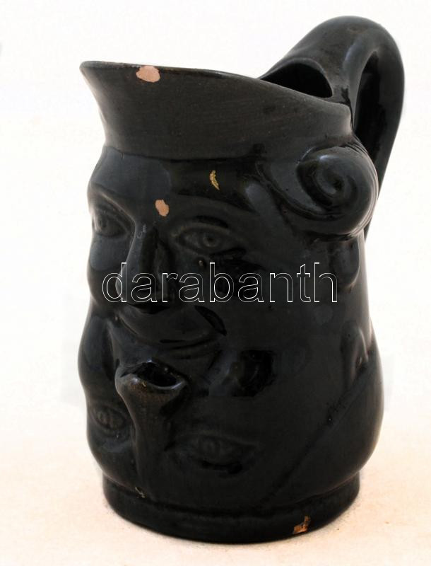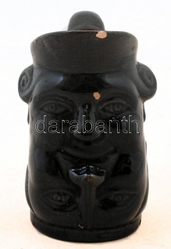 Leírás: Kerámia kiöntő, kétfejes mintával, "A" jelzéssel, lepattanásokkal, 12x10cm