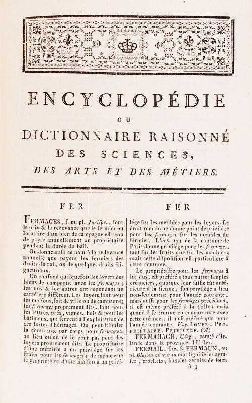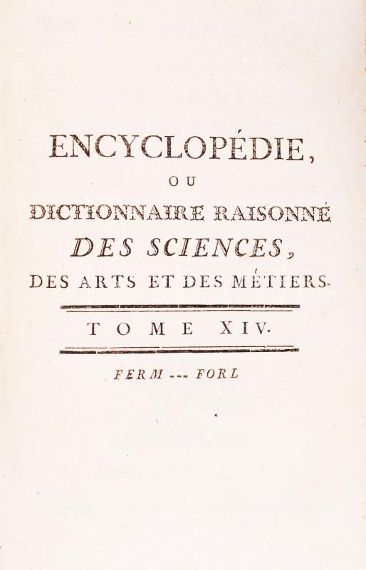 Denis Diderot - Jean d' Alembert: Recueil de planches, pour la nouvelle edition ou dictionnaire raisonne des sciences, des arts et des metiers... Tome XIV. Lausanne, 1781. Soc. Typogr. Egészbőr kötésben / In full leather binding