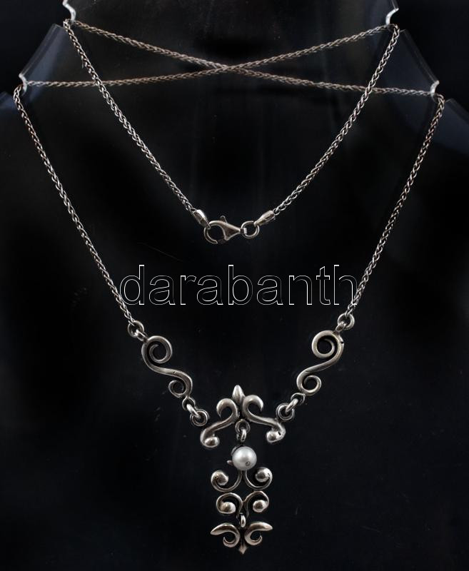 Apró gyönggyel díszített, indamotívumos ezüst(Ag) nyaklánc, jelzett, b... https://www.darabanth.com/hu/243-Gyorsarveres/243.0/Festmeny-mutargy-papirregiseg-egyeb/Nemesfem-Disztargyak-Orak-es-Ekszerek~400041/Apro-gyonggyel-diszitett-indamotivumos-ezustAg-nyaklanc-jelzett-br-8-9-g---SilverAg-~II1146161