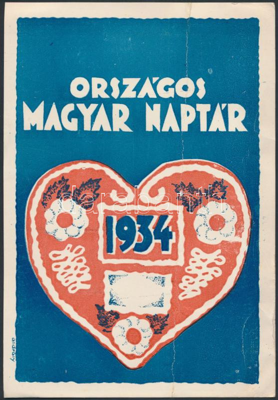1934 "Országos Magyar Naptár" kisplakát, hajtott, rajzolta: Andrássy, ... https://www.darabanth.com/hu/243-Gyorsarveres/243.0/Festmeny-mutargy-papirregiseg-egyeb/Nyomtatvanyok~400007/1934-Orszagos-Magyar-Naptar-kisplakat-hajtott-rajzolta-Andrassy-21x15-cm~II1142359
