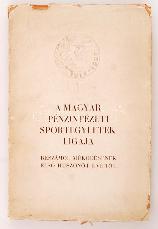 1937 A Magyar Pénzintézeti Sportegyletek Ligája beszámol működésének első huszonöt évéről 1912-1937. Szerk. és kiad. az évforduló ünneplését rendező bizottság. Bp., [1938], Globus. Hegedüs Lóránt (1872-1943) pénzügyminiszter, a Liga díszelnöke és örökös tiszteletbeli tagjának, valamint más prominens személyiségeknek a fényképével, érdekes írásokkal. Kicsit szakadt papírkötésben, egyébként jó állapotban.