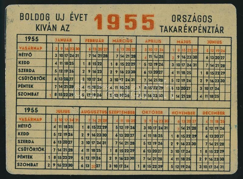 Leírás: 1955 Ez az igazi szerencse... Boldog új évet kíván az Országos Takarékpénztár, fém reklám kártyanaptár, jó állapotban
