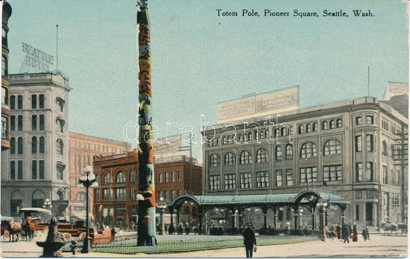Leírás: Seattle, Washington; Totem Pole, Pioneer Square