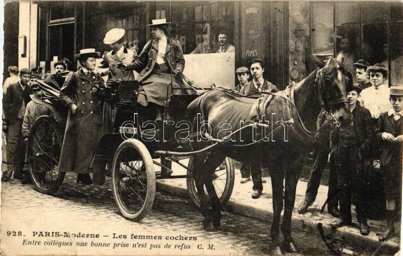 Paris, Moderne, Les femmes cochers / women carriage (b) https://www.darabanth.com/hu/243-Gyorsarveres/243.0/Kepeslapok/Franciaorszag~6000034/Paris-Moderne-Les-femmes-cochers-women-carriage-b~II1082314