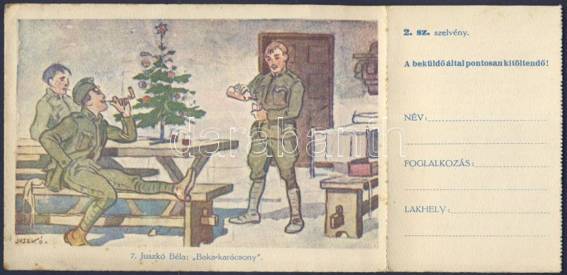 Leírás: Baka-Karácsony, katonák, kinyitható tombola képeslap / Christmas, Hungarian soldiers, opening raffle postcard s: Juszkó (EK)