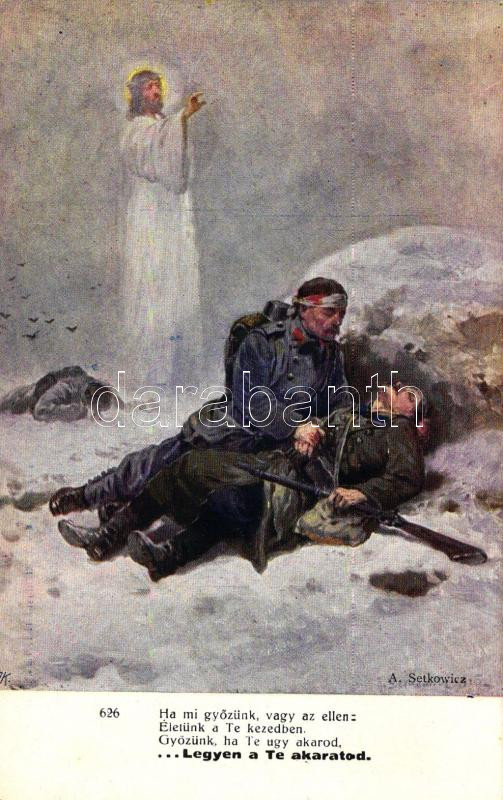 ...Legyen a Te akaratod. / Injured soldiers, Jesus s: Setkowicz https://www.darabanth.com/hu/243-Gyorsarveres/243.0/Kepeslapok/Katonai~6000091/Legyen-a-Te-akaratod-Injured-soldiers-Jesus-s-Setkowicz~II1083130