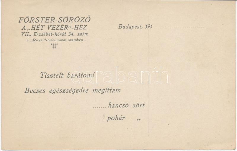 Förster-Söröző a "Hét vezér"-hez reklámlap / Hungarian beer ... https://www.darabanth.com/hu/243-Gyorsarveres/243.0/Kepeslapok/Reklam~6000057/Forster-Sorozo-a-Het-vezer-hez-reklamlap-Hungarian-beer-hall-adverisement-EK~II1084885