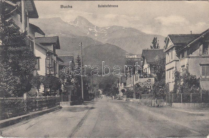 Buchs, Bahnhofstrasse / railway station street, hotel (EK) https://www.darabanth.com/hu/243-Gyorsarveres/243.0/Kepeslapok/Svajc~6000099/Buchs-Bahnhofstrasse-railway-station-street-hotel-EK~II1080279