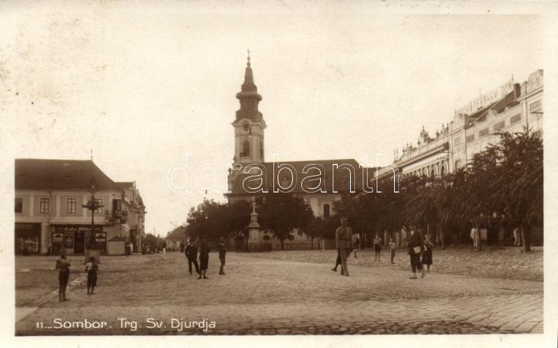 Zombor, Szent György ortodox templom, tér / church, square https://www.darabanth.com/hu/243-Gyorsarveres/243.0/Kepeslapok/Vajdasag~6000010/Zombor-Szent-Gyorgy-ortodox-templom-ter-church-square~II1137459
