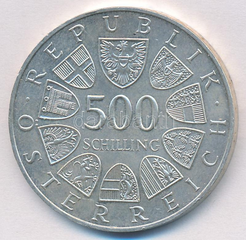 Austria 1... https://www.darabanth.com/hu/243-Gyorsarveres/243.0/Numizmatika/Kulfoldi-fem-es-ezustpenzek~12/Ausztria-1985-500Sch-Ag-2000-eves-Bregenz-T1---Austria-1985-500-Schilling-Ag-2000th-Anniversa~II1142372
