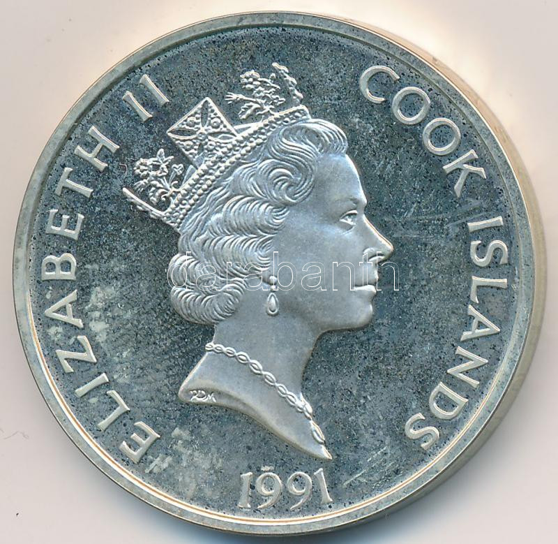 Cook-szigetek 1991. 50$ Ag "Amerika 500 éves" nem eredeti tokban T:PP