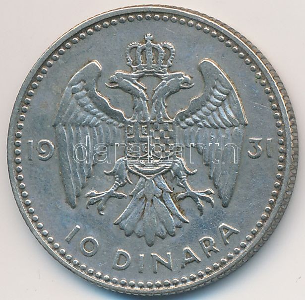 Yugoslavia 1931. ... https://www.darabanth.com/hu/243-Gyorsarveres/243.0/Numizmatika/Kulfoldi-fem-es-ezustpenzek~12/Jugoszlavia-1931-10D-Ag-I-Sandor-T2---Yugoslavia-1931-10-Dinara-Ag-Alexander-I-CVF~II1095206