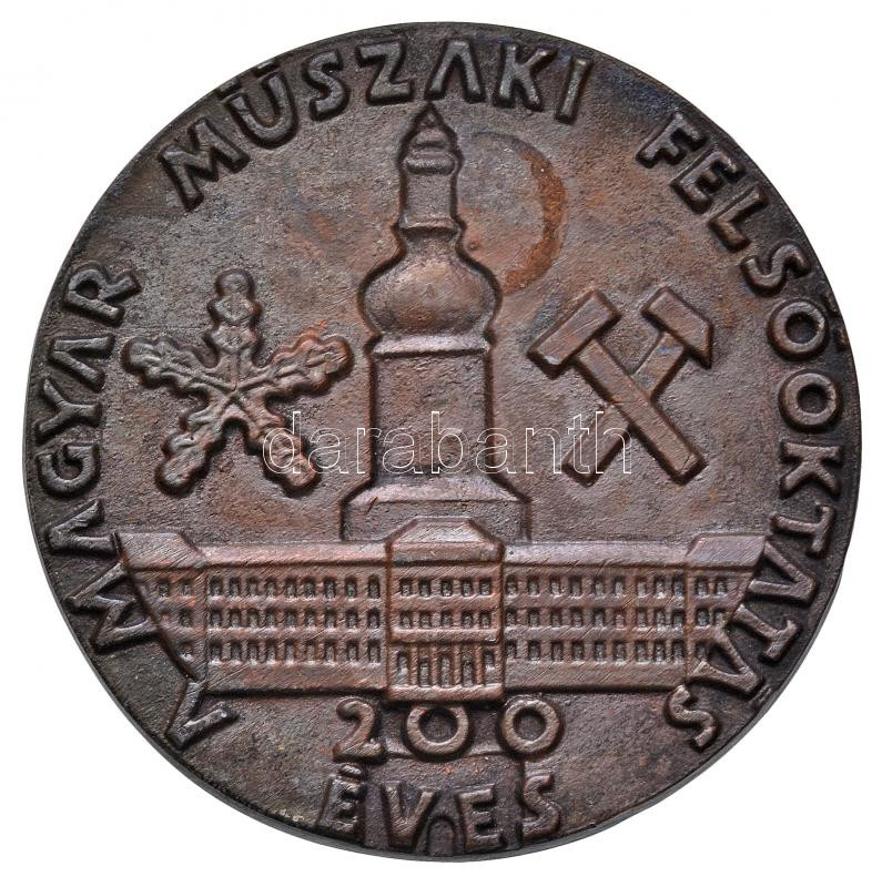 Leírás: Renner Kálmán (1927-1994) 1935. "A Magyar Műszaki Felsőoktatás 200 éves" fém emlékplakett (84mm) T:2