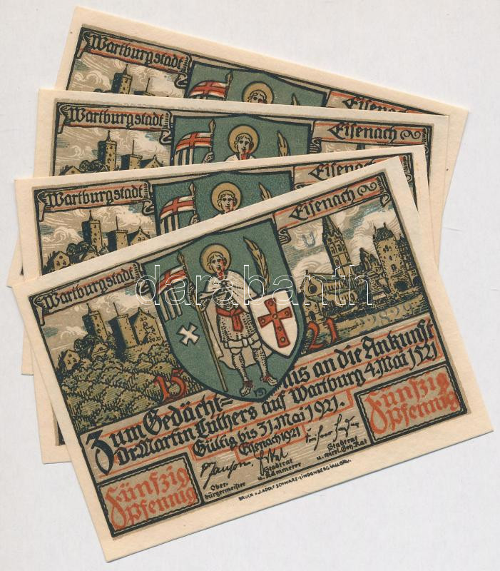 Germany / Weimar Republic / Wartburgstadt Eisenach 1921. 50 Pfennig necessity note (4xdiff) C:UNC