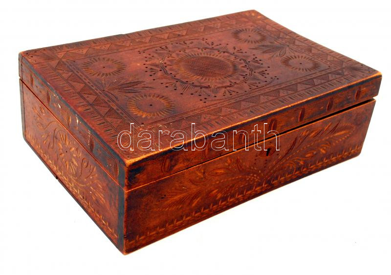 Faragott régi fadoboz, kulcs nélkül, 30x19x9 cm https://www.darabanth.com/hu/245-Gyorsarveres/245.0/Festmeny-mutargy-papirregiseg-egyeb/Bolhapiac~600027/Faragott-regi-fadoboz-kulcs-nelkul-30x19x9-cm~II981729