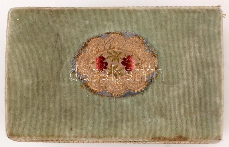 Leírás: Virágmotívummal díszített, dekoratív bársonyborítású doboz, 16,5×10,5×10 cm