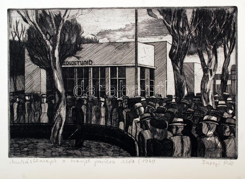 Barczy Pál (1933-2003): Munkástömegek a szovjet pavilon előtt. Rézkarc... https://www.darabanth.com/hu/245-Gyorsarveres/245.0/Festmeny-mutargy-papirregiseg-egyeb/Festmenyek-es-grafikak~200316/Barczy-Pal-1933-2003-Munkastomegek-a-szovjet-pavilon-elott-Rezkarc-papir-jelzett-19C39729~II1155761