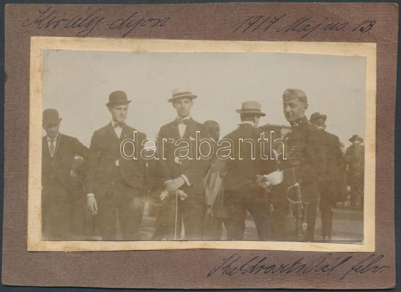1917 Király-díjon, lóversenyen, kartonra ragasztott fotó, 11x6 cm https://www.darabanth.com/hu/245-Gyorsarveres/245.0/Festmeny-mutargy-papirregiseg-egyeb/Foto~600040/1917-Kiraly-dijon-loversenyen-kartonra-ragasztott-foto-11x6-cm~II1008785
