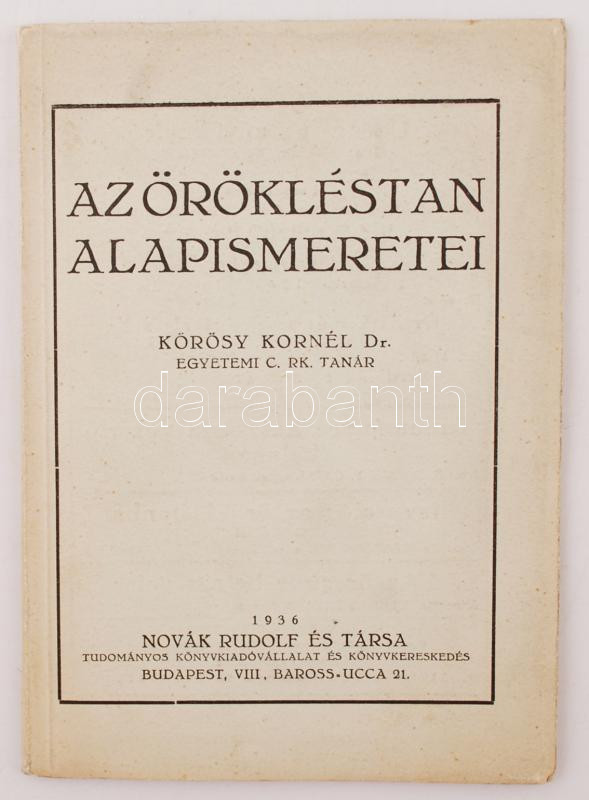 Körösy Kornél dr.: Az örökléstan alapismeretei. Budapest, 1936, Novák ... https://www.darabanth.com/hu/245-Gyorsarveres/245.0/Festmeny-mutargy-papirregiseg-egyeb/Konyvek-Tudomany-es-technika~600038/Korosy-Kornel-dr-Az-oroklestan-alapismeretei-Budapest-1936-Novak-Rudolf-es-Tarsa-Kiad~II1018237