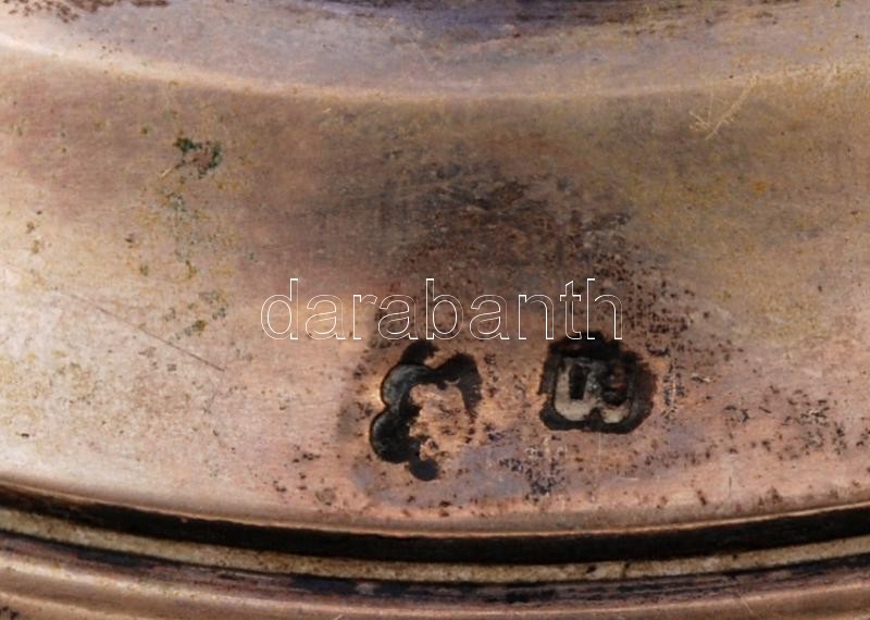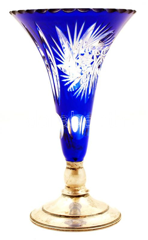 Leírás: Ezüst (Ag.) talpas csiszolt, metszett ólomkristály váza, jelzett, mesterjeggyel, apró csorbákkal, m: 19 cm + miniatűr csiszolt, metszett ólomkristály váza, jelzés nélkül, hibátlan, m: 6 cm