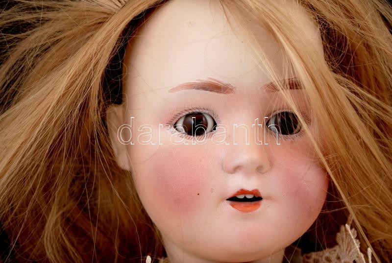 The Schoenau & Hoffmeister porcelain: SPBH Germany 914 11 antik baba, jelzett, porcelán fejű, fa testtel, a fej belül restaurált, de ennek kívül semmi nyoma, 95cm /Antique Schoenau & Hoffmeister Doll,the head restored within without trace on the face