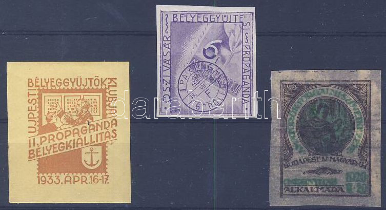 1933-39 Újpest, Őszi vásár, Amatőrök 3 db emlékbélyeg https://www.darabanth.com/hu/245-Gyorsarveres/245.0/Festmeny-mutargy-papirregiseg-egyeb/Parafilatelia~600032/1933-39-Ujpest-Oszi-vasar-Amatorok-3-db-emlekbelyeg~II340491