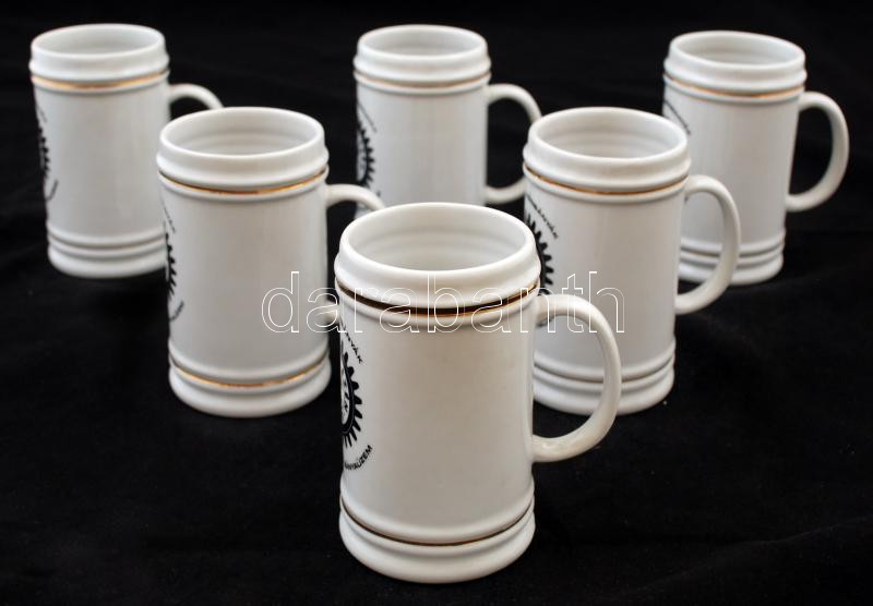 Leírás: Hollóháza Dorogi Szénbányák Lencsehegyi Bányász Üzem emlék sörös kupa készlet 6 darabos, jelzett, hibátlan, 110mm