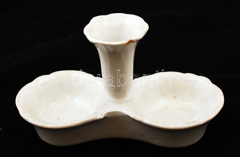 Leírás: Régi porcelán só-, bors- és fogpiszkálótartó, lepattanással, 14x6x8 cm