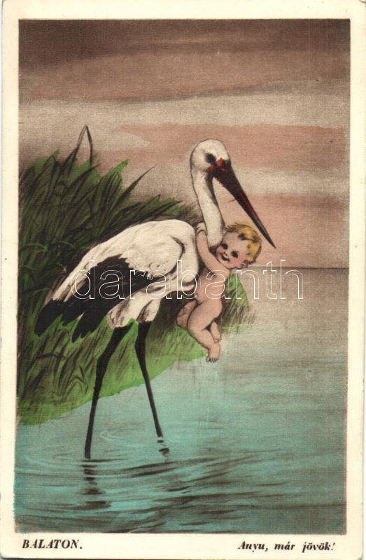 Balaton, 'Anyu, már jövök!' gólya kisgyerekkel (Rb) https://www.darabanth.com/hu/245-Gyorsarveres/245.0/Kepeslapok/Magyarorszag~400016/Balaton-Anyu-mar-jovok-golya-kisgyerekkel-Rb~II1045808