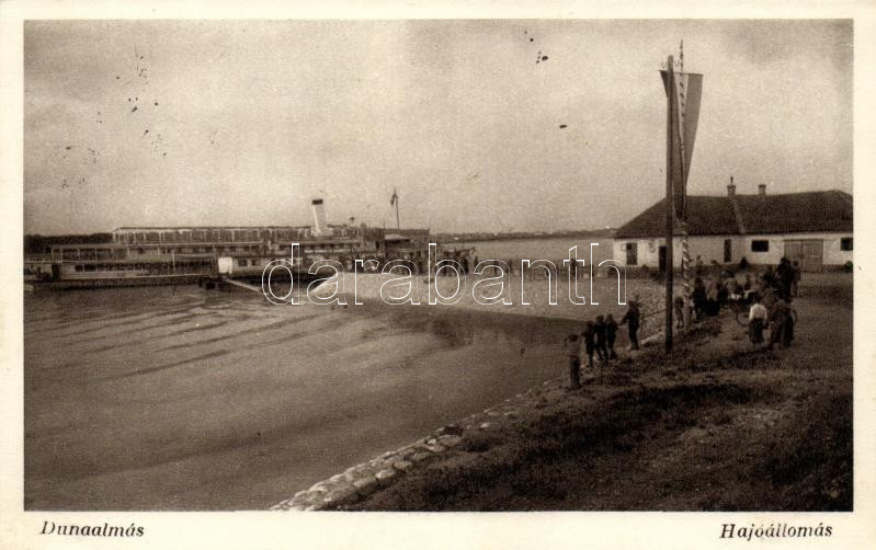 Dunaalmás, Hajóállomás, országzászló https://www.darabanth.com/hu/245-Gyorsarveres/245.0/Kepeslapok/Magyarorszag~400016/Dunaalmas-Hajoallomas-orszagzaszlo~II1159702