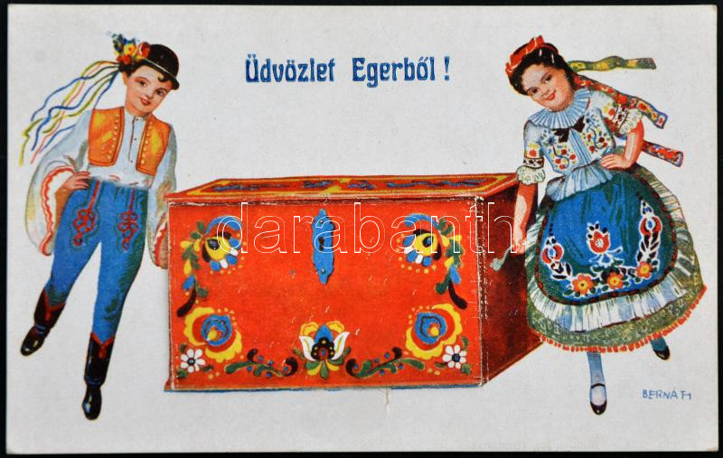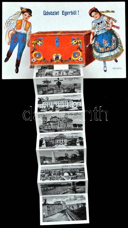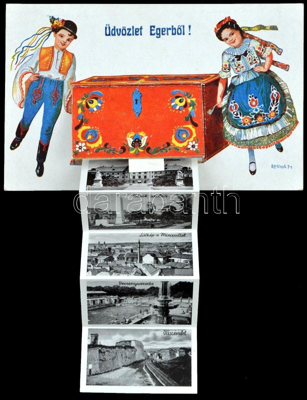 Eger, folklór, leporello s: Bernáth https://www.darabanth.com/hu/245-Gyorsarveres/245.0/Kepeslapok/Magyarorszag~400016/Eger-folklor-leporello-s-Bernath~II1047637