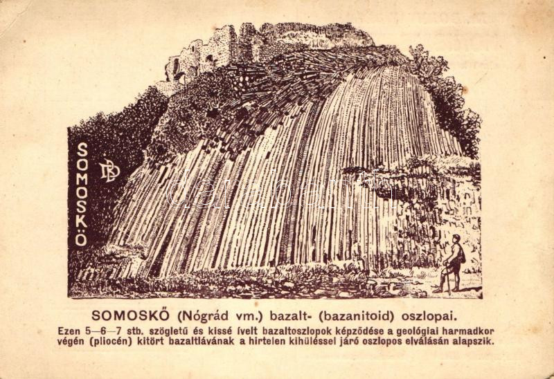 Sátorosbánya, Siatorská Bukovinka; Bazaltoszlopok, bazalt vízesés, felette a somoskői vár. Dr. Dornyay Béla Honismertető című képeslapsorozat 3. száma / Hrad Somoska / castle ruins, basalt waterfall (ragasztónyom / glue mark)