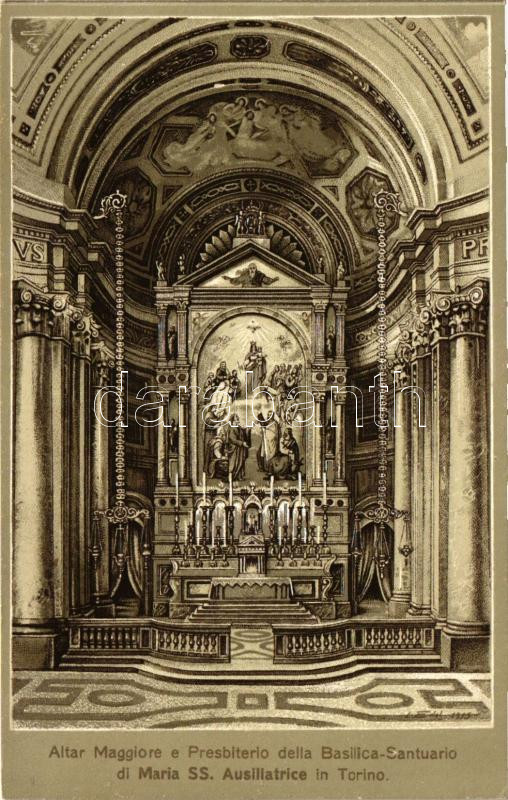 Leírás: Torino, Altar Maggiore e Presbiterio della Basilica Santuario di Maria SS. Ausillatrice / altar of the Basilica, artist signed, litho