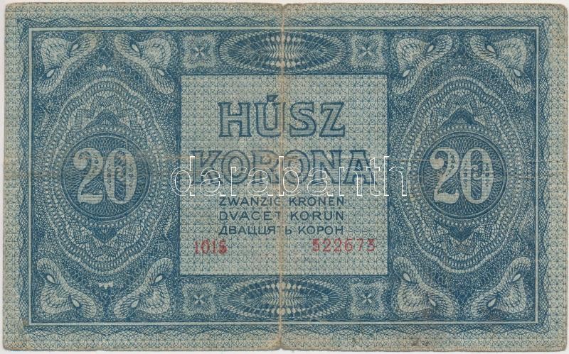 1919. július 15. 20K T:III- https://www.darabanth.com/hu/245-Gyorsarveres/245.0/Numizmatika/Magyar-bankjegyek~600007/1919-julius-15-20K-TIII-~II1163189