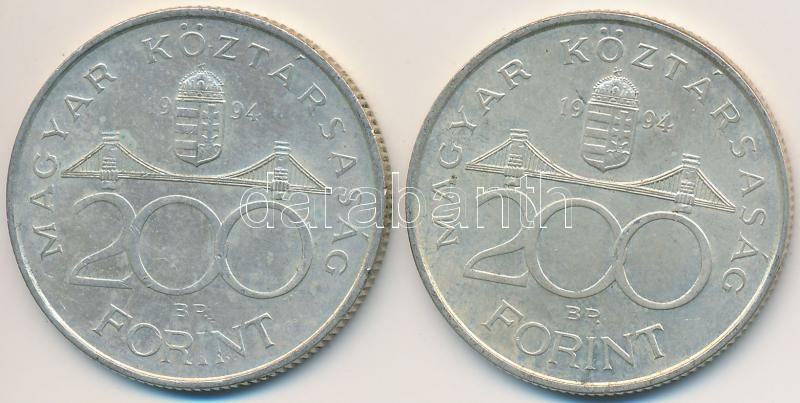 Leírás: 1994. 200Ft Ag "Deák" (2x) T:2,2-