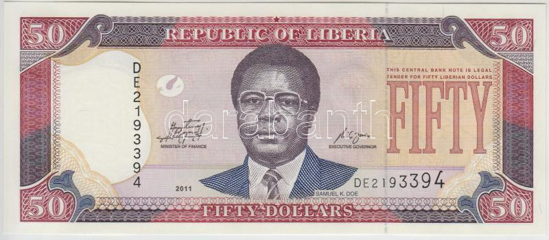 Liberia 2011. 50 Dollars C:UNC https://www.darabanth.com/hu/246-Gyorsarveres/246.0/Numizmatika/Kulfoldi-bankjegyek~400012/Liberia-2011-50USD-TI-3Cbr3ELiberia-2011-50-Dollars-CUNC~II904321