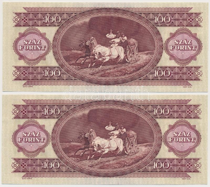 1980. 100Ft (2x) sorszámkövetők T:I https://www.darabanth.com/hu/246-Gyorsarveres/246.0/Numizmatika/Magyar-bankjegyek~400008/1980-100Ft-2x-sorszamkovetok-TI~II1165465