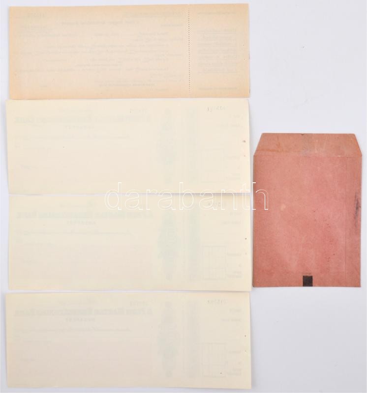 Budapest ~1920-1930. "A Pesti Magyar Kereskedelmi Bank Budapest" kitöltetlen csekk (3x) sorszámkövetők + ~1940. "A Pesti Magyar Kereskedelmi Bank Budapest" kitöltetlen csekkmegrendelőlevél + ~1930. Boríték 1P (100db 1f) számára T:I,I-