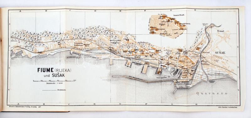 Illustrierter Führer durch Dalmatien und das Kroatische Küstenland. Mit 2 karten, 4 Planen und 12 abbildungen. Leipzig, 1930, Woerl's Reisebücher-Verlag. Kiadói egészvászon kötésben.