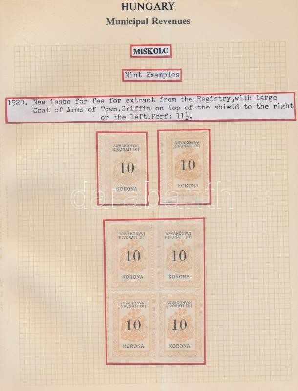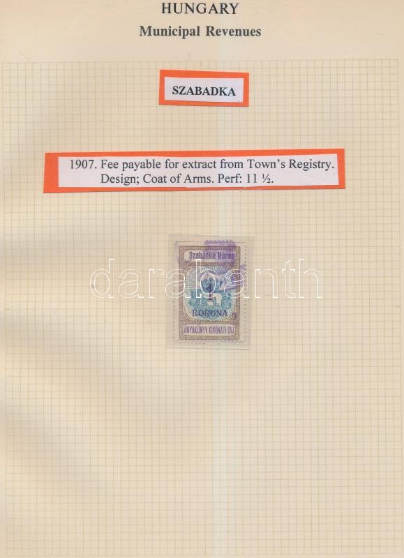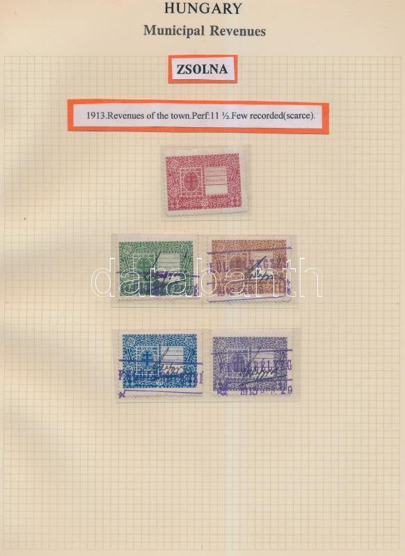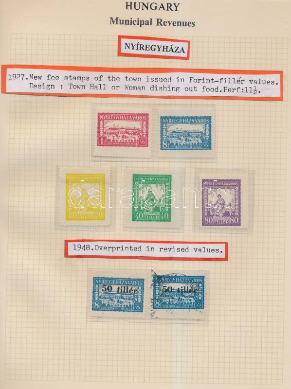 Gary Ryan magyar városi okmánybélyeg gyűjteménye, kb 2.000 különféle városi okmánybélyeg 7 albumban, kiállítási lapokon feldolgozva. Rendkívüli anyag, hatalmas katalógus érték!! Minden oldal scannelve! / The Gary Ryan collection of Hungarian Municipal Revenues, about 2.000 pcs on exhibition pages, in 7 binders. Fantastic material with an extremely high catalog value. All pages scanned!