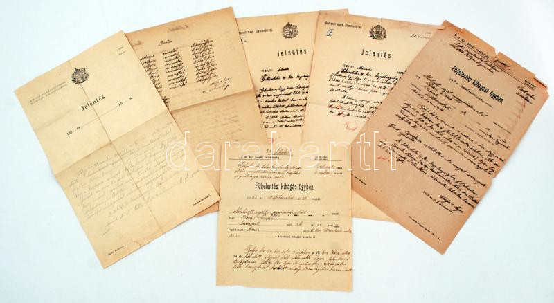1920-1928 Rendőrségi jelentések, följelentések különféle ügyekben (láb... https://www.darabanth.com/hu/247-Gyorsarveres/247.0/Festmeny-mutargy-papirregiseg-egyeb/Okmanyok~1000015/1920-1928-Rendorsegi-jelentesek-foljelentesek-kulonfele-ugyekben-labtores-villamosbal~II1180063